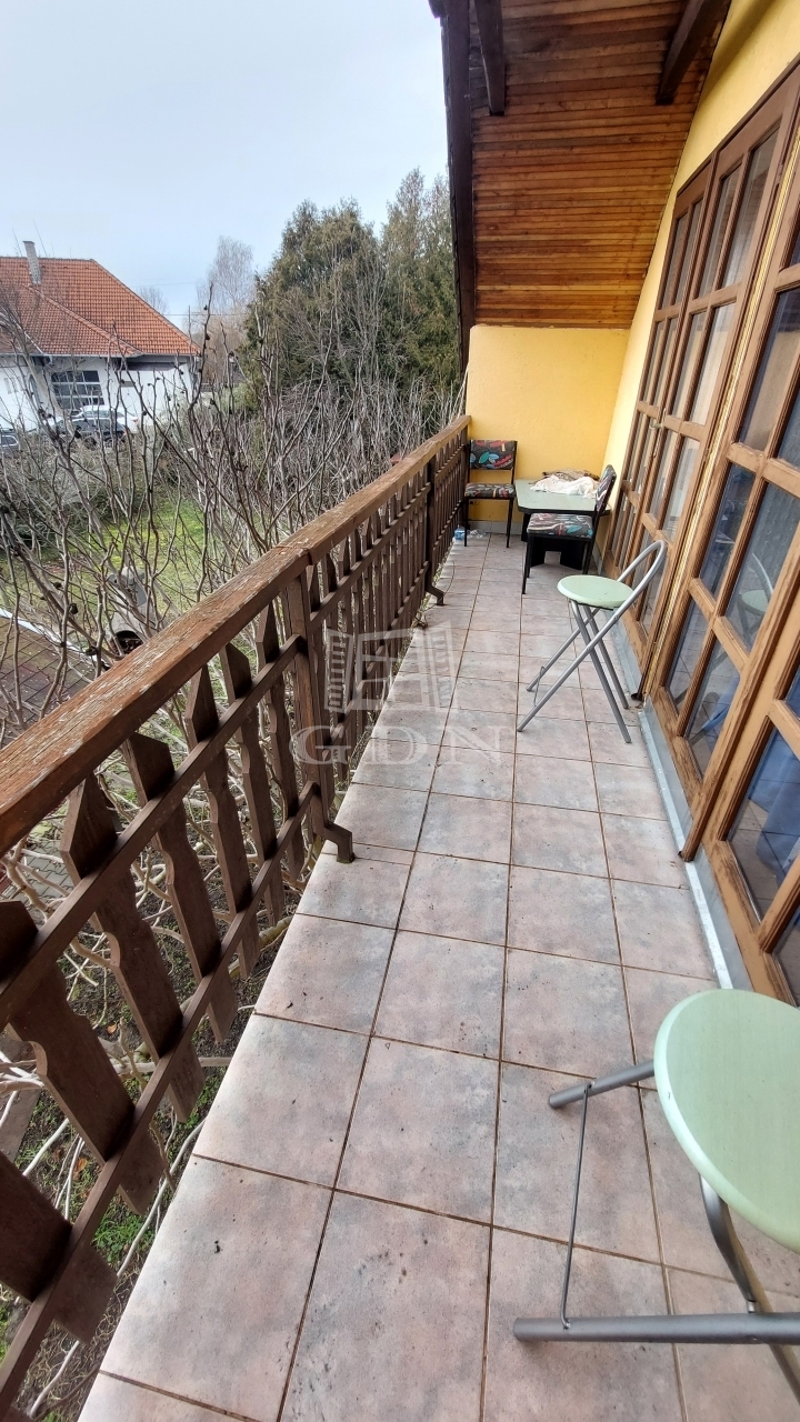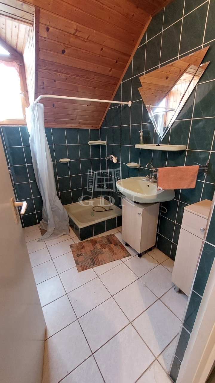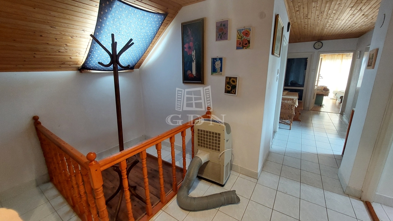 Az emelet további három szobát kínál, valamint előtér/közlekedőt, konyhát, kamrát, fürdőszobát, külön WC-t és egy 7 m²-es erkélyt. A fűtés gázkonvektorokkal megoldott.