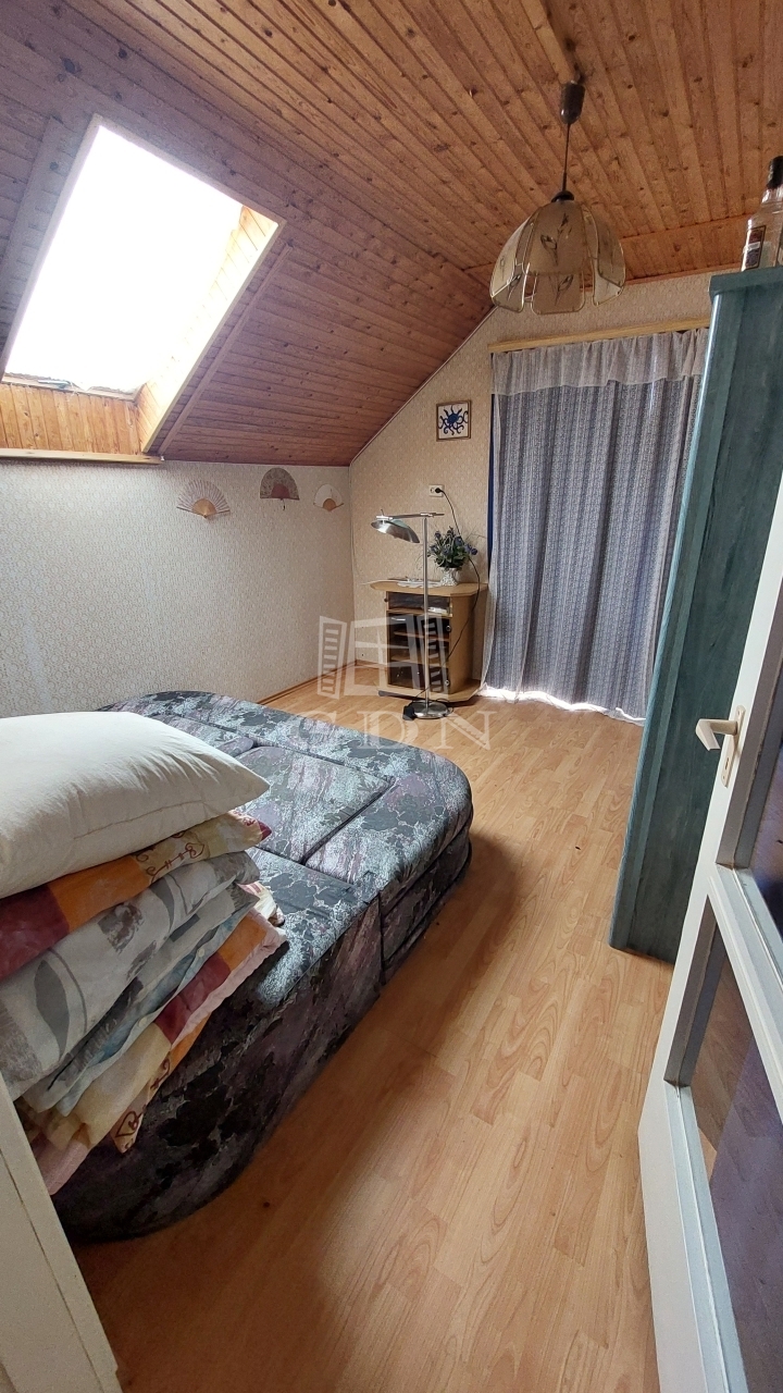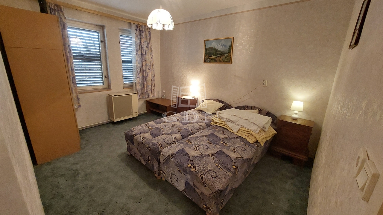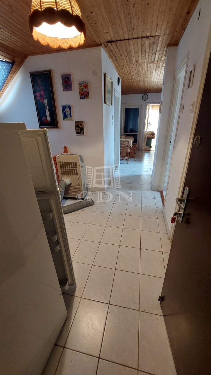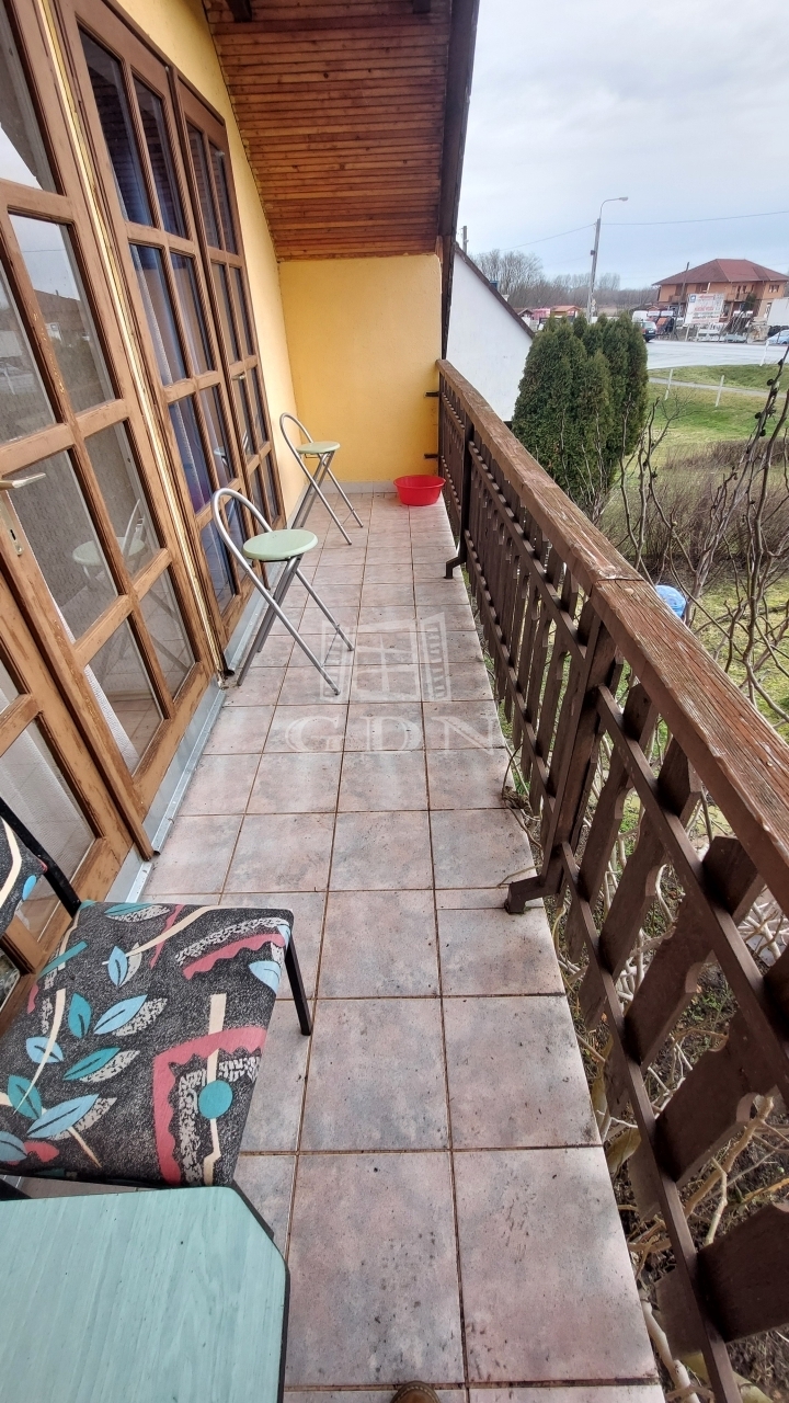 Az emelet további három szobát kínál, valamint előtér/közlekedőt, konyhát, kamrát, fürdőszobát, külön WC-t és egy 7 m²-es erkélyt. A fűtés gázkonvektorokkal megoldott.
