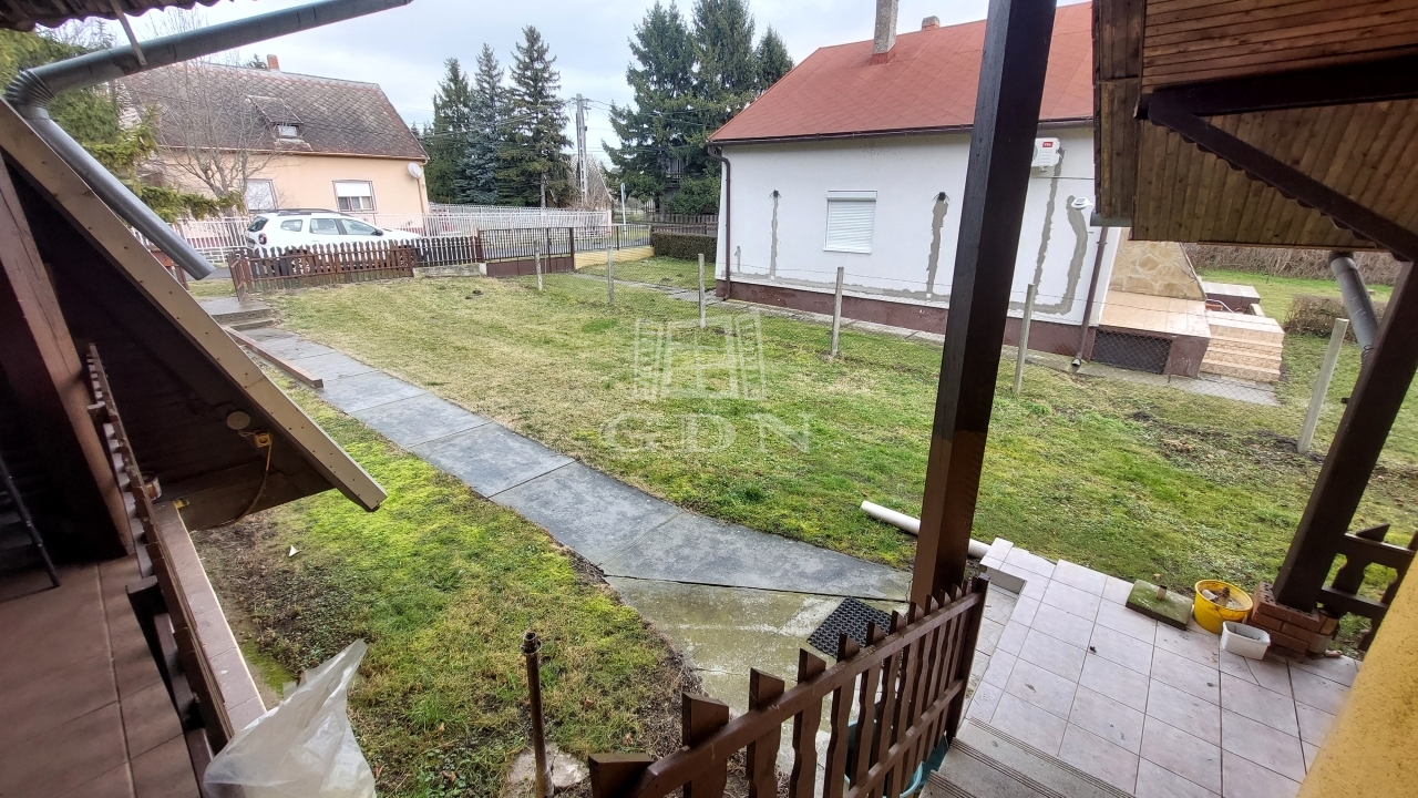 Az utcafront felé, előkertes kialakítással található a kb. 39 m²-es faház, amely szobából, hálóból, konyhafülkéből, fürdőszobából és közlekedőből áll. A főépületet és a faházat egy 18 m²-es fedett terasz köti össze, ami kiváló közösségi térként szolgálhat – akár családi, akár baráti összejövetelekhez.