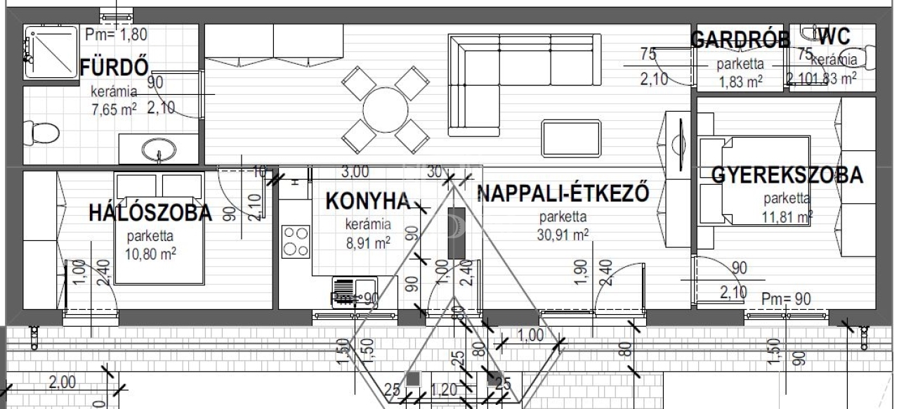 80 m2Alapterület 3 Szoba
