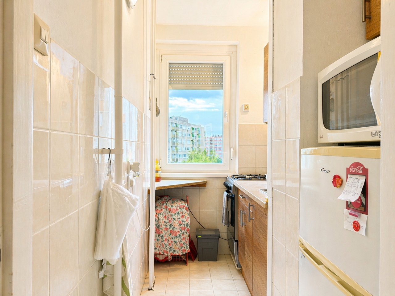 Az ingatlan a 7. emeleten helyezkedik el, parkra néző kilátással, ami csendes, zöld környezetet biztosít a mindennapokhoz. A lakás praktikus elosztású, jól kihasználható terekkel rendelkezik, így ideális első otthonnak vagy befektetési célra egyaránt.