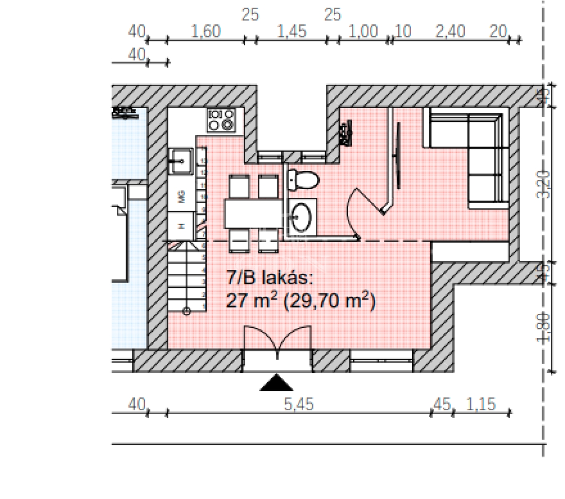 " B"- lakás rendkívül jó beosztású, hasznos alapterülete 46 nm.