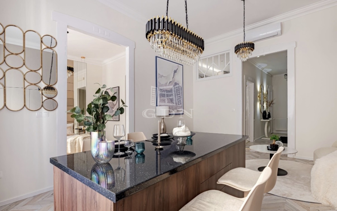 Az ingatlan teljes körű felújításon esett át, ahol minden részletet a minőség, a kifinomult ízlés és a kényelem határoz meg. A tágas nappali, az elegáns hálószoba gardróbszobával, valamint a modern, prémium anyagokból kialakított konyha, fürdőszoba és külön WC harmonikus, letisztult luxusérzetet teremtenek.