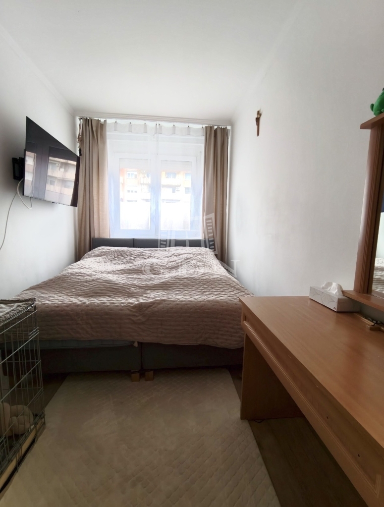 Az ingatlan egy rendezett társasház 6. emeletén helyezkedik el, és egy 4 m²-es erkéllyel is rendelkezik, ahonnan kellemes, csendes környékre nyíló kilátás tárul elénk. A lakás praktikus elrendezésű, 2+1 szobával rendelkezik, így ideális választás lehet fiatal párok, illetve kisebb családok számára is.