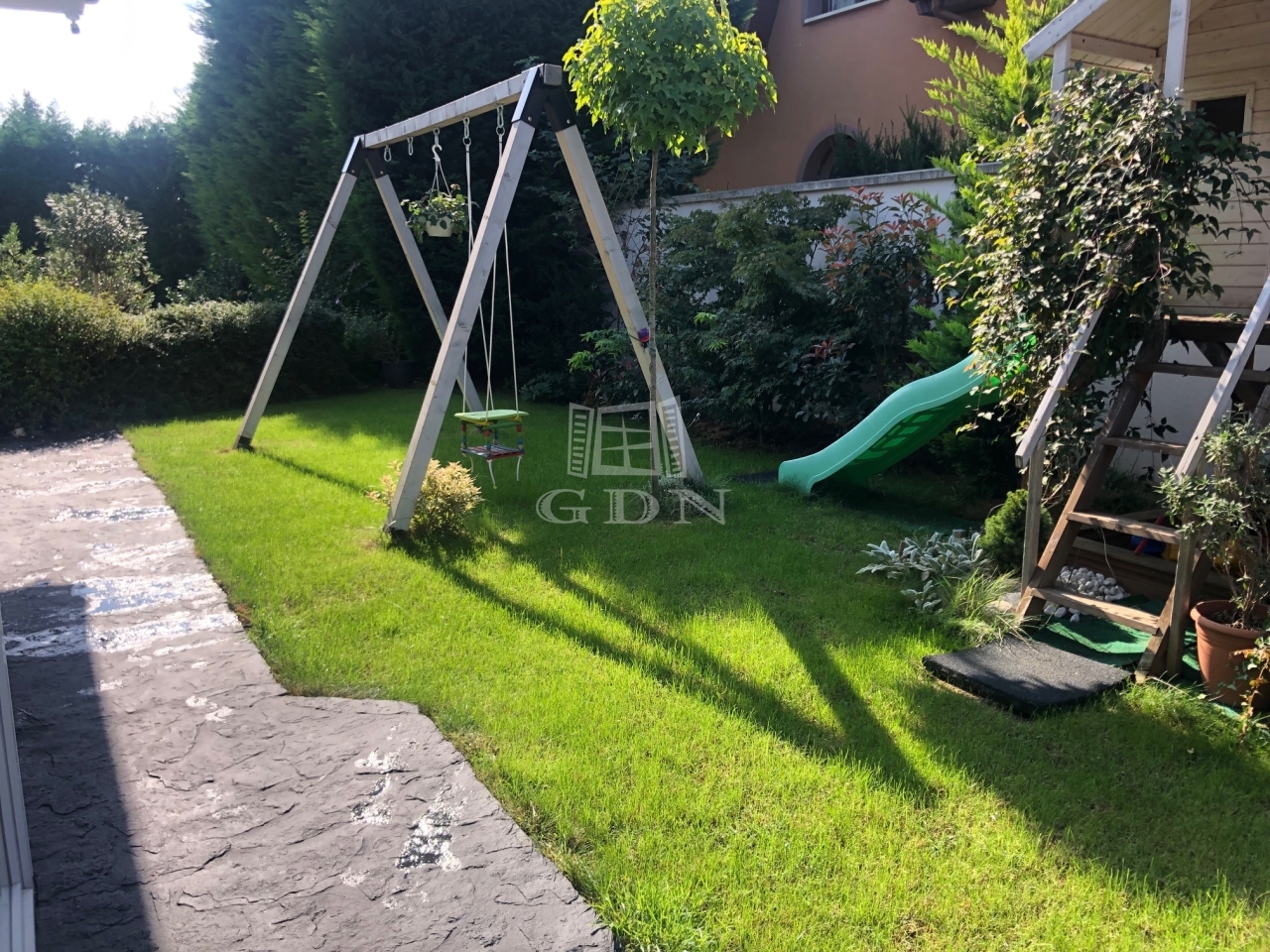 A kert ideális pihenésre, családi életre és vendéglátásra egyaránt.