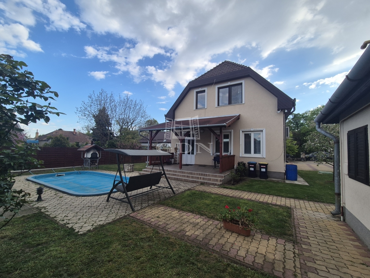 XVII. kerület méltán népszerű kertvárosában, széles utcafronttal, kétállásos garázzsal, fúrt kúttal-öntözőrendszerrel, medencével rendelkező 973 m2-es telken elhelyezkedő, körbejárható, részben alápincézett, tetőtérbeépítéses családi házat kínálok eladásra.