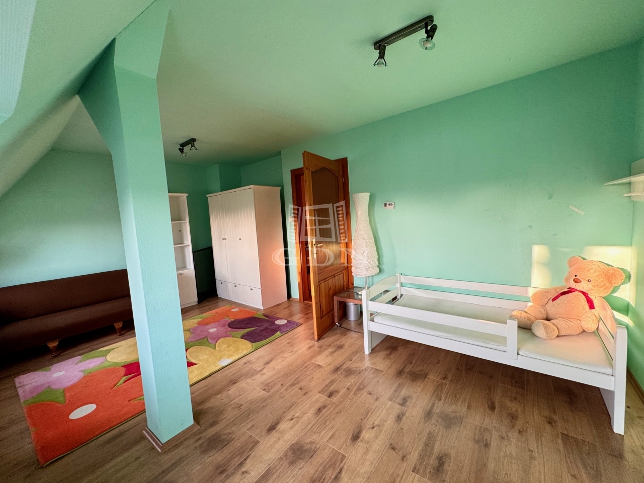 -Emelet: lépcsőház(11,16m2), közlekedő(2,64m2), WC+kézmosó(4,16m2), 2 szoba(20,48m2, 12,41m2), gardróbszoba(5,6m2), fürdőszoba+WC(10,2m2), erkély(2,5m2).