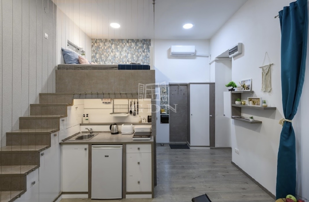 Eladó a VII. kerület egyik legkeresettebb részén, a belső Erzsébetvárosban, az Akácfa utcában egy 23 m²-es + kb. 5 m²-es állógalériás, kiváló adottságú lakás.