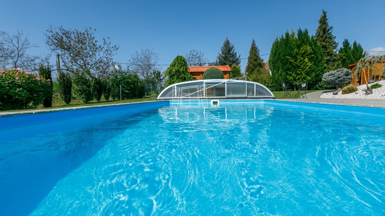 A telken található: garázs, műhely, pavilon, szabadtéri medence (4 x 8 x 1,5 m).
