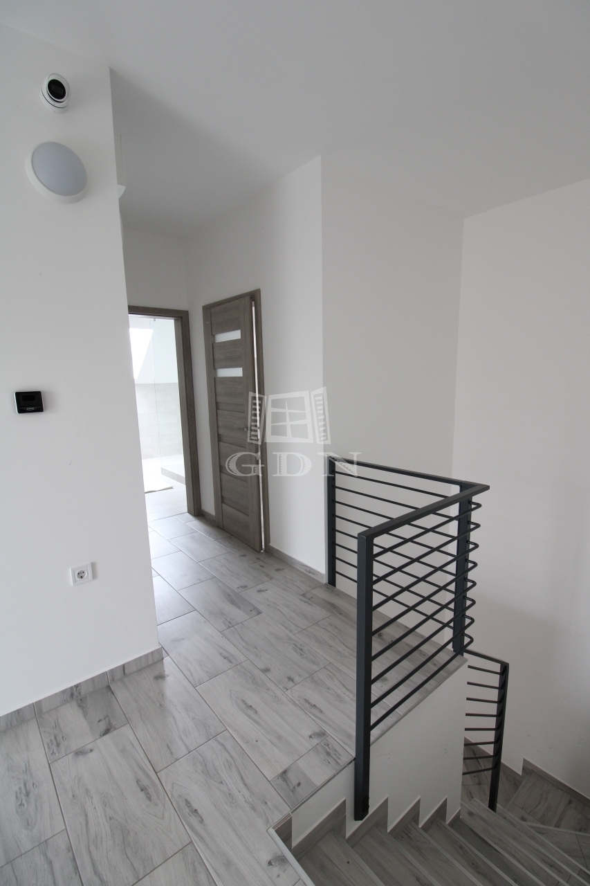 Felső szintre kényelmes fokkiosztású stabil lépcsőn és világos lépcsőházon keresztül juthatunk fel. Ezen a szinten egy 22nm (hasznos 19,8nm) szoba és két félszoba 11,8nm (hasznos9,24nm), 8,9nm (hasznos 6,53nm), 8,75nm-es fürdőszoba, 2,75nm illemhely, illetve 10,6nm közlekedő lett kialakítva. A közlekedőből juthatunk fel a 30nm nagyságú padlásra.
