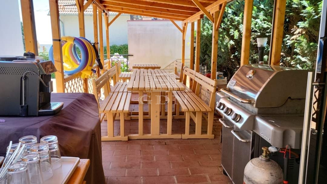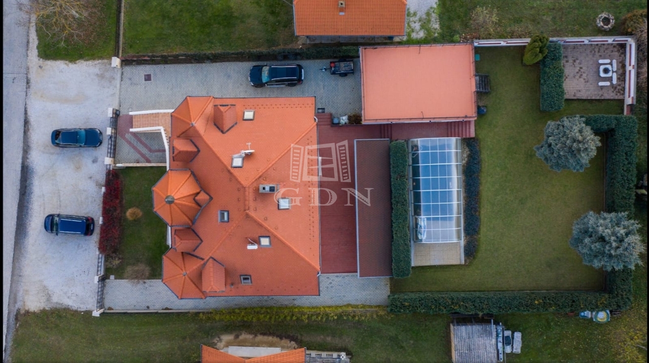 A kétállásos garázs és öt további parkolóhely biztosítja a helyet az autóknak.