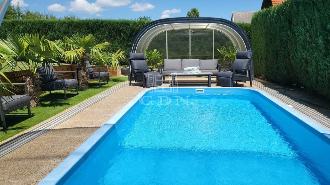 Az apartmanház extra kényelmi szolgáltatásai között megtalálható egy fűtött, fedett medence, mosókonyha, tárolók, műszaki helyiségek, valamint egy fedett terasz. A kertben grillező napozóterasz és automata öntözőrendszer garantálja a kényelmet.