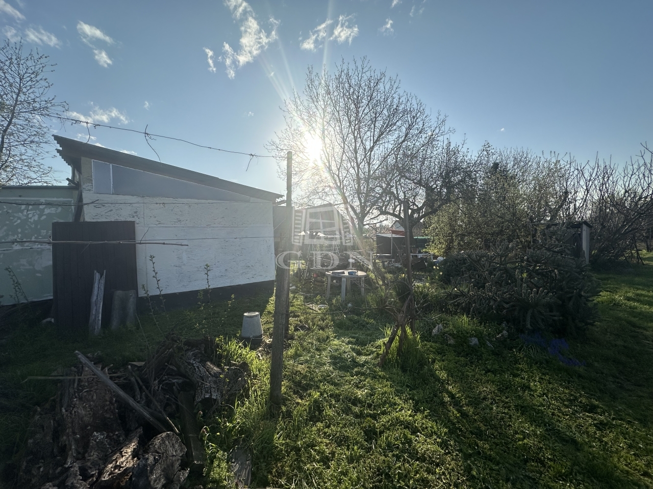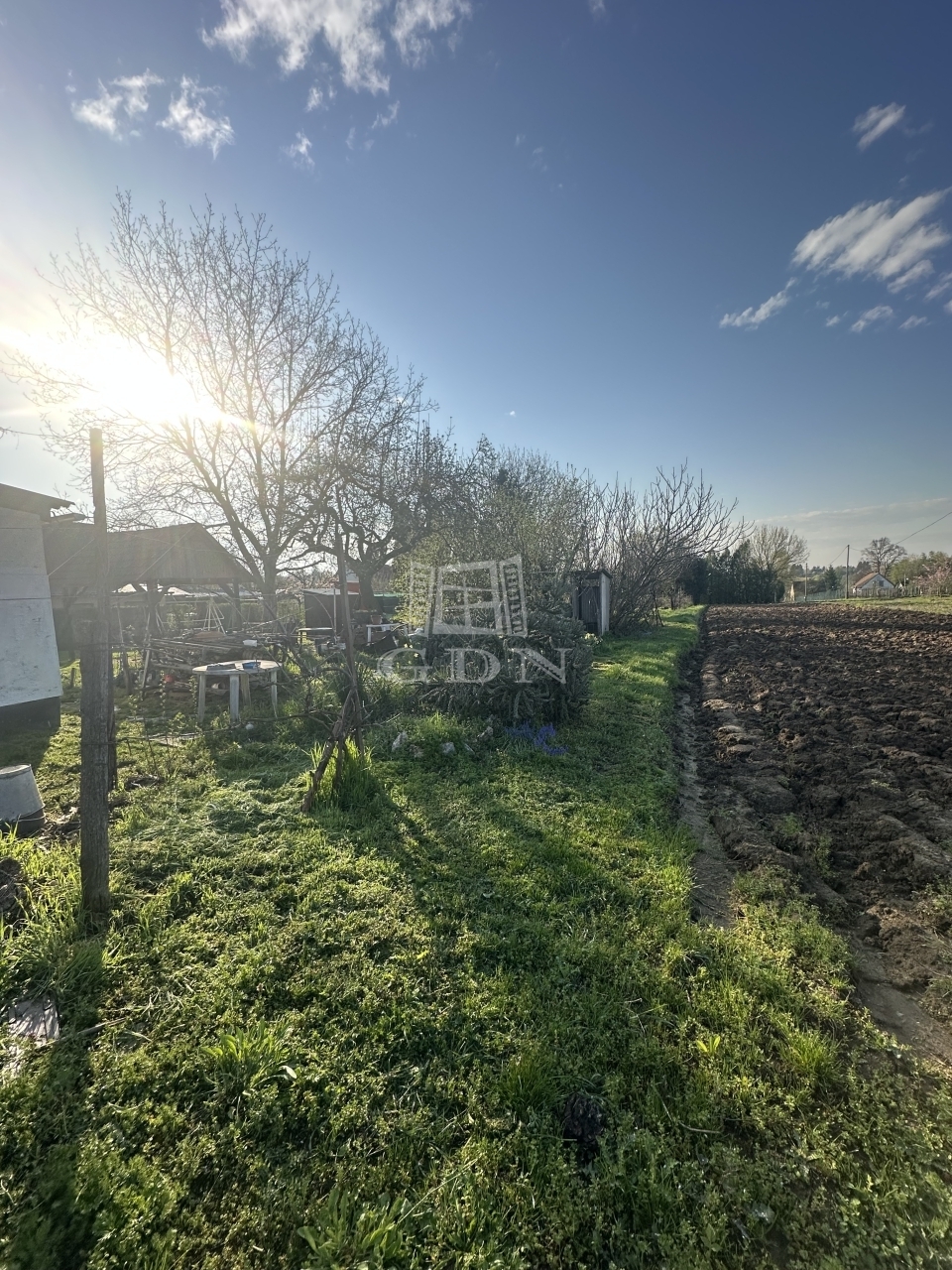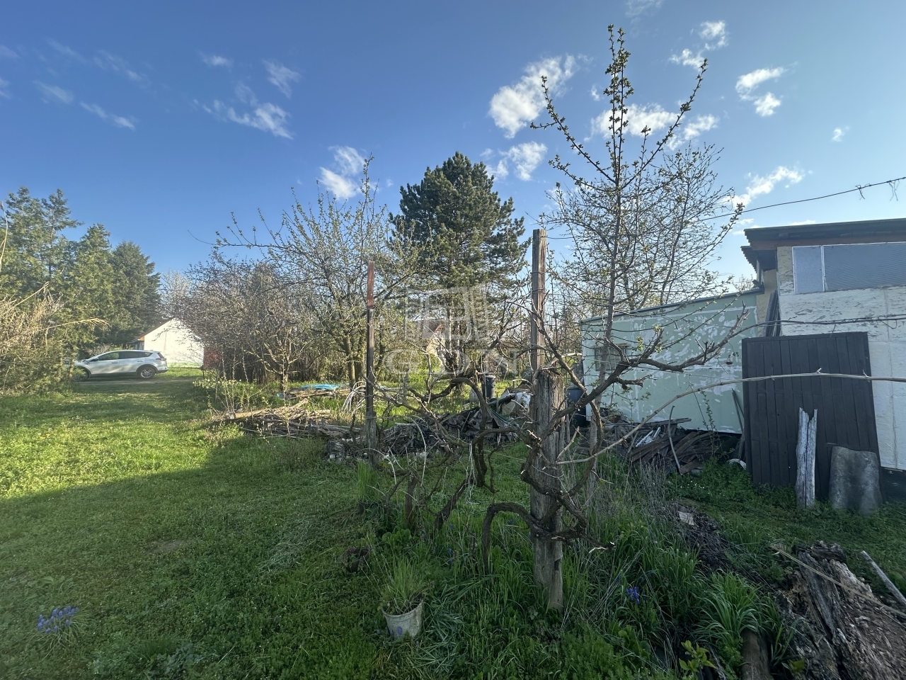 A gondozott területen gyümölcsfák és szőlőtőkék, valamint egy kis 12 m2-es kerti felépítmény található.