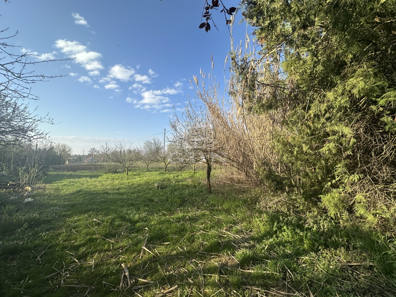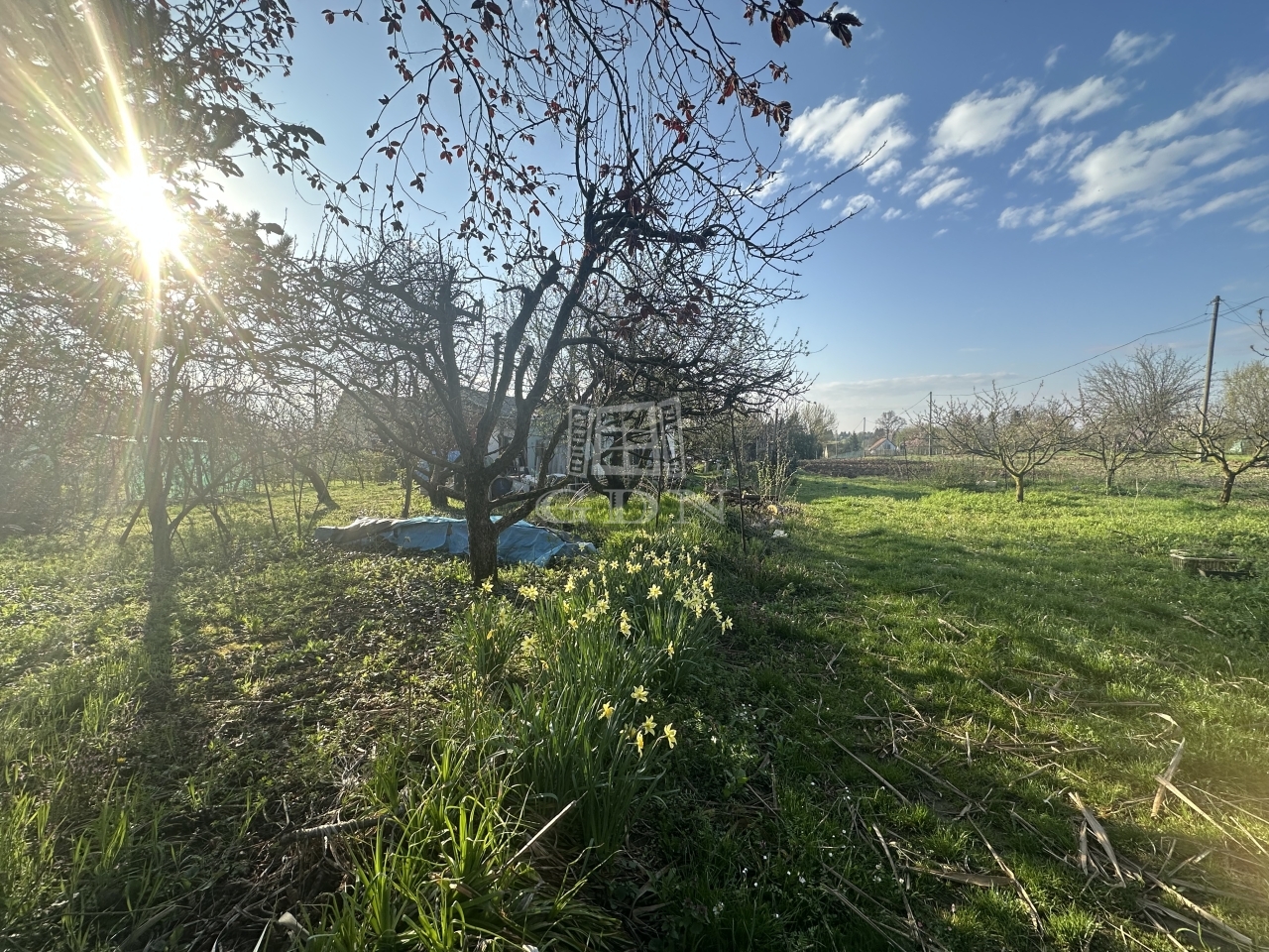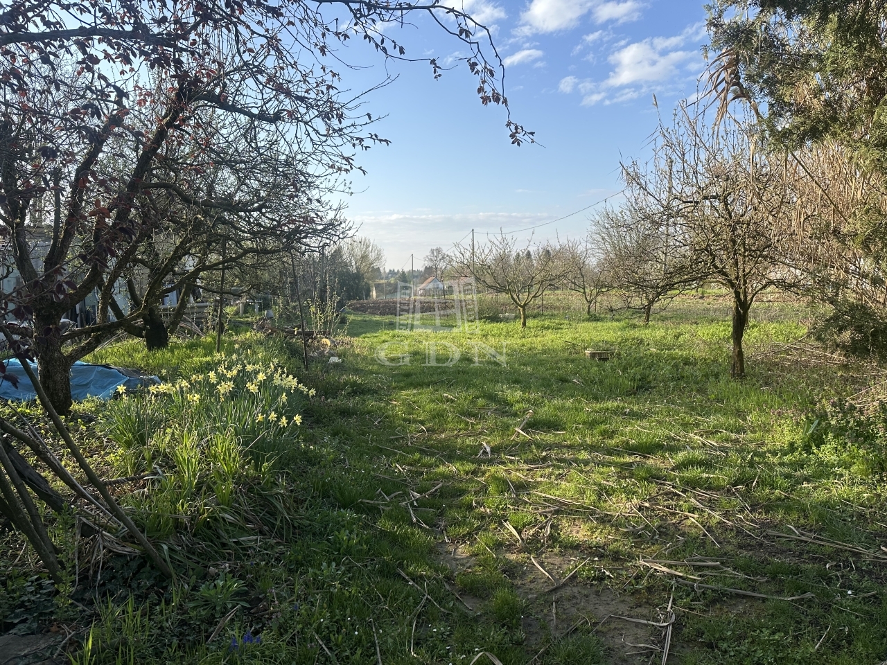 A gondozott területen gyümölcsfák és szőlőtőkék, valamint egy kis 12 m2-es kerti felépítmény található.
