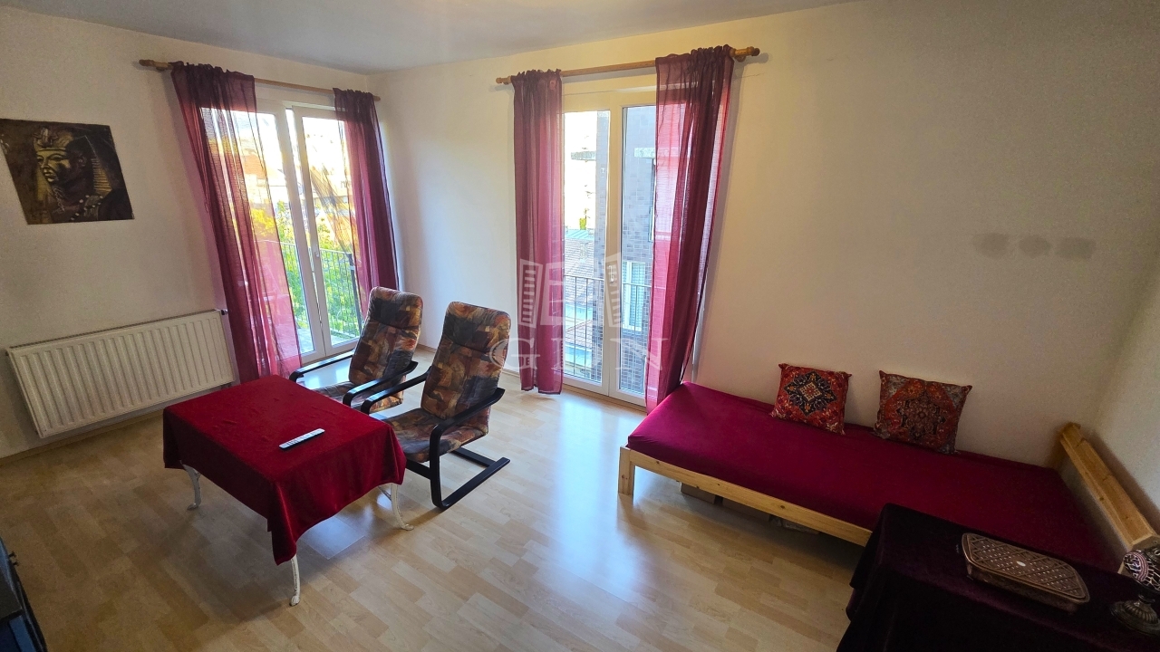A 2 nagyméretű szobával rendelkező otthon optimális elosztása leginkább az élhető tágas terekben nyilvánul meg. A két külön álló francia, illetve egy normál méretű erkélyről egy belső parkra nyílik kilátás, ezért a nyüzsgő környék forgalmának zajától is teljes mértékben elszigetelt. A lakás felső emeleti elhelyezkedése lévén ragyogóan napos és világos.