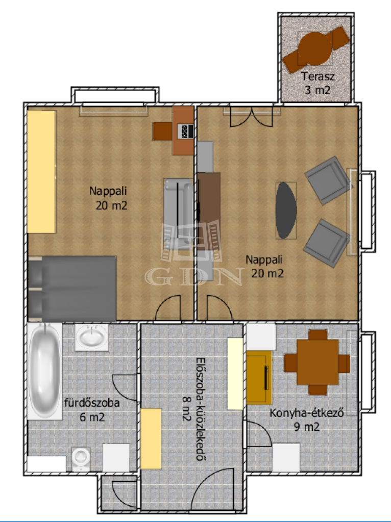62 m2Alapterület 2 Szoba
