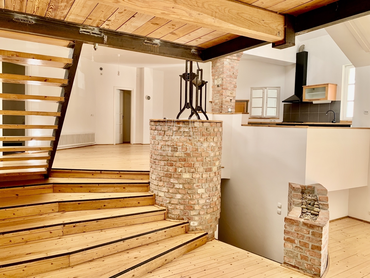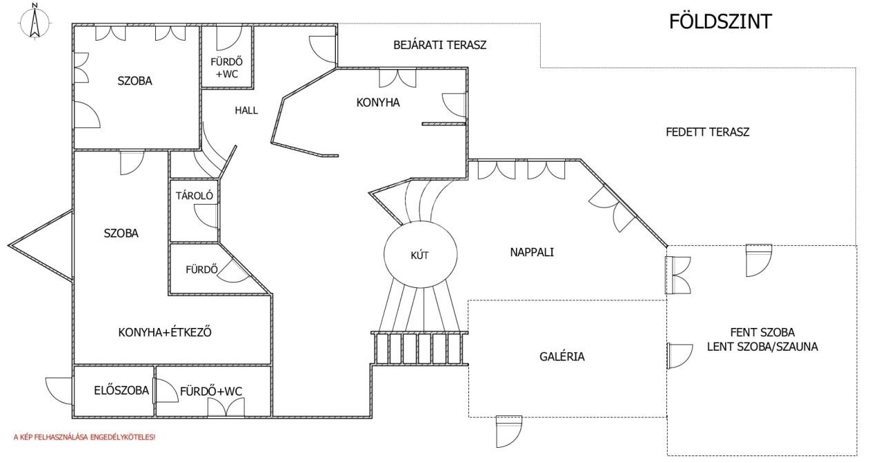 - étkező-konyha résszel, amelynek közepén egy működő kút található,