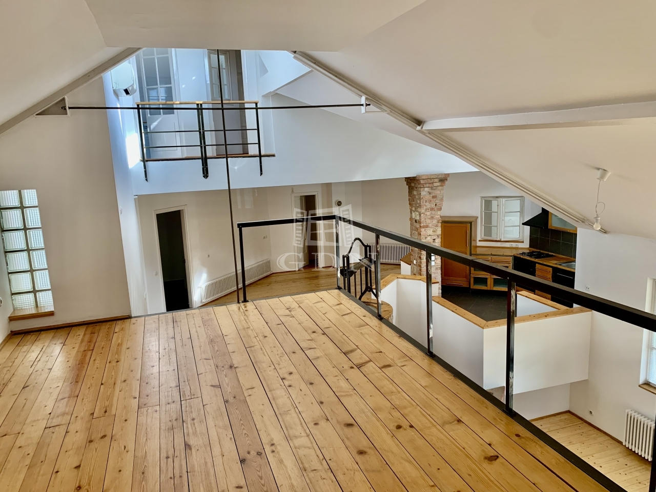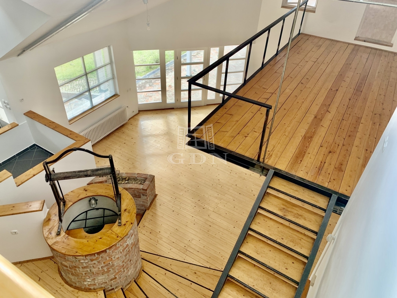 - Galéria, amelyből a nappali szintre látni.