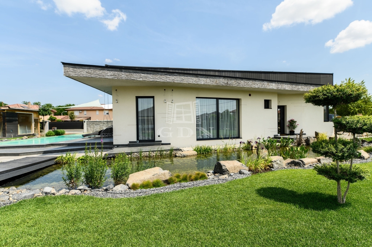•A gondozott kertben egy 15x4 méteres, LEDVILÁGÍTÁSSAL, vízeséssel ellátott 60m2-es medence, valamint 30 méteres, öntisztuló kerti tó is helyet kapott.