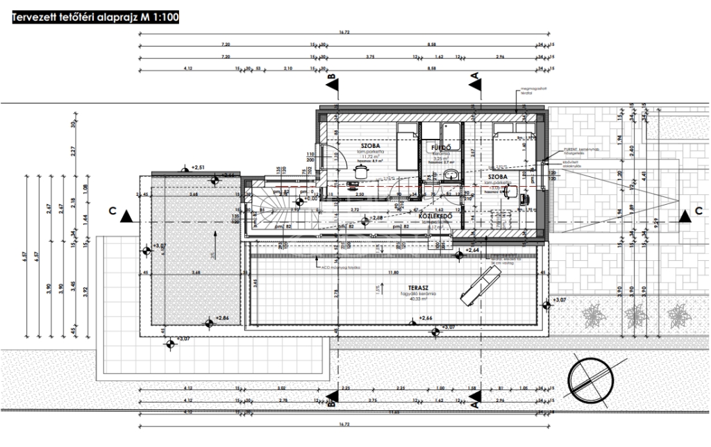 Szuterén szinten garázs és tároló lett kialakítva.