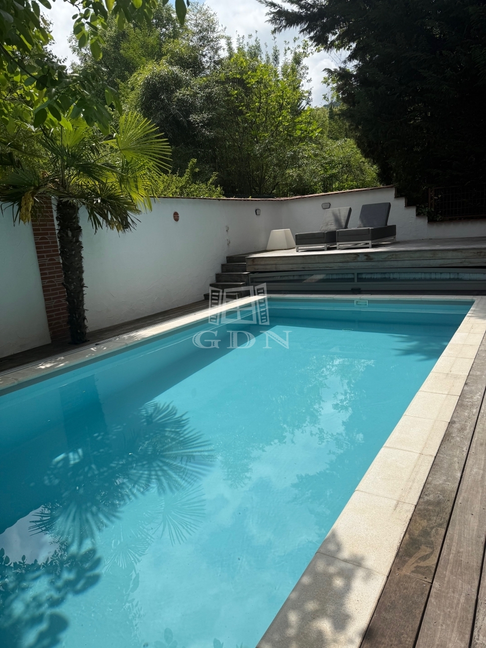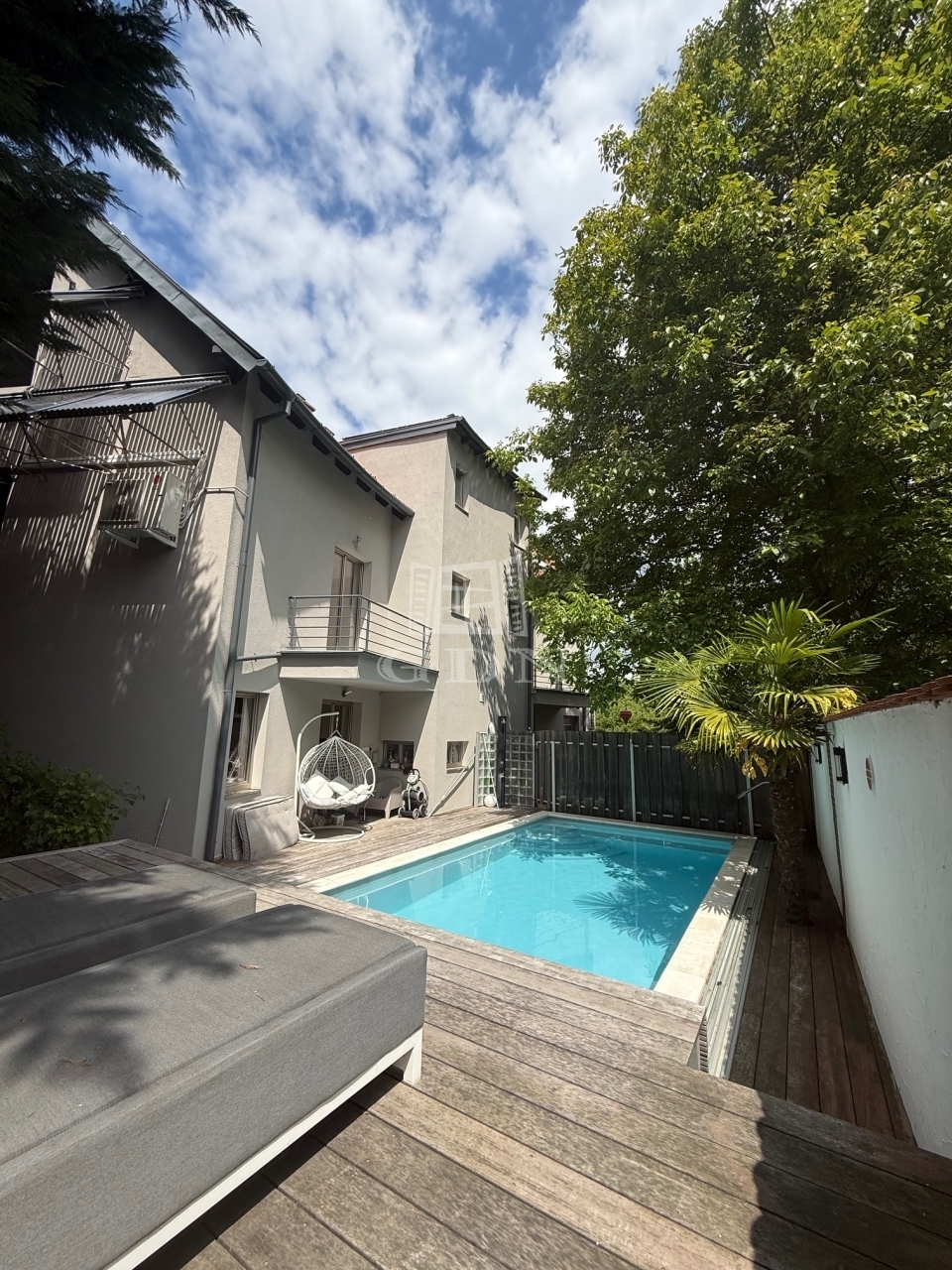 A gondozott kertben egy 8x4 méteres, fűthető medence nyakzuhannyal, fa napozóterasz, szabadtéri főzőhely, valamint termő gyümölcsfák (füge, málna, szőlő) és dísznövények biztosítják az igazi kertvárosi élményt.