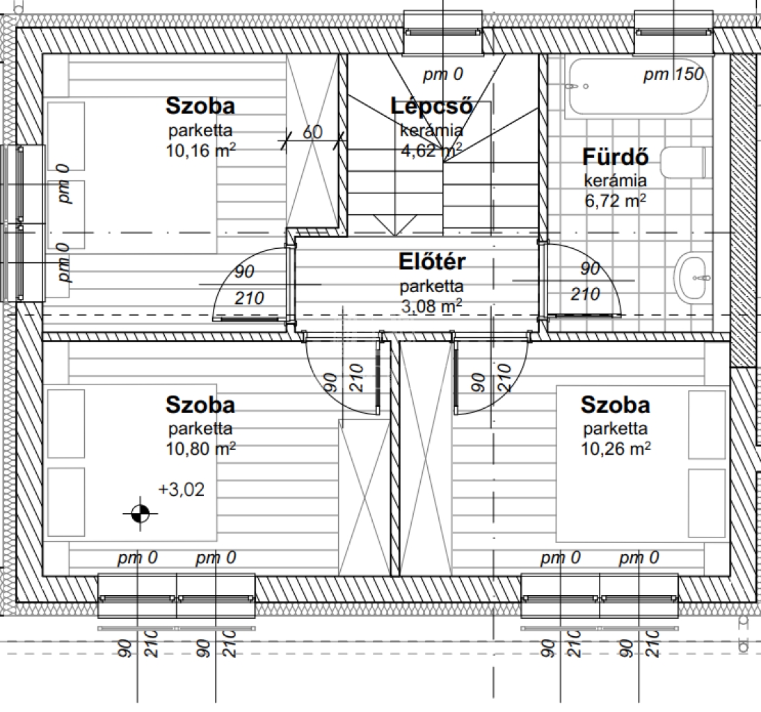 • 3 szoba 10.8 m2, 10.26 m2, 10.16 m2