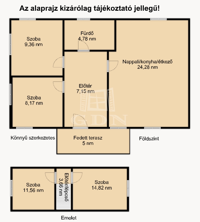 A téglaházban 3, a könnyűszerkezetesben 3+1 félszoba kapott helyet.