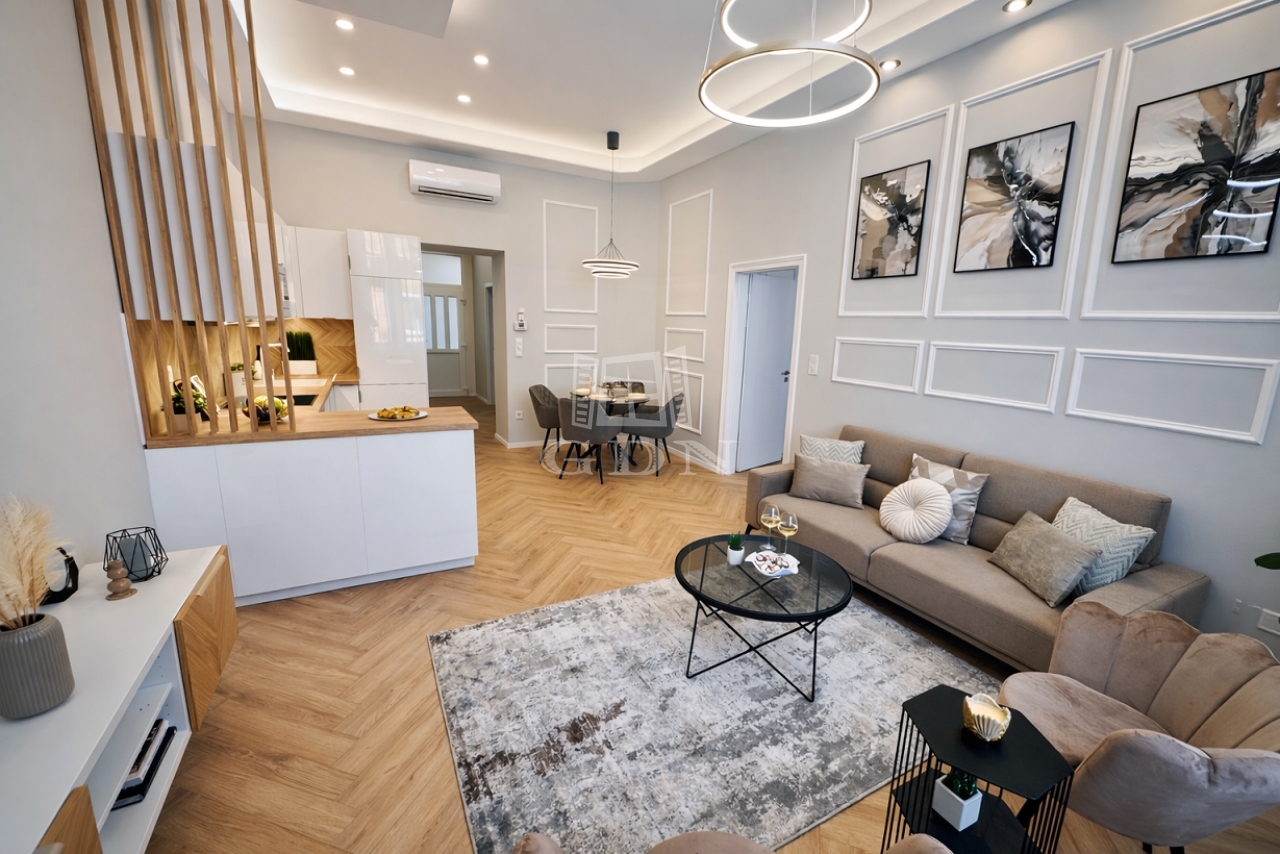 Budapest pezsgő központjában, a Dohány utca egyik legkeresettebb részén kínálunk megvételre egy 70 m²-es, prémium minőségben felújított lakást, pár lépésre a Blaha Lujza tér forgatagától.