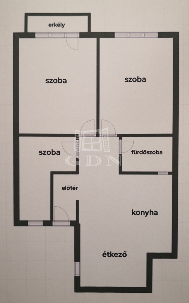A 82 négyzetméteres 2. emeleti lakásban 2+1 félszoba található.