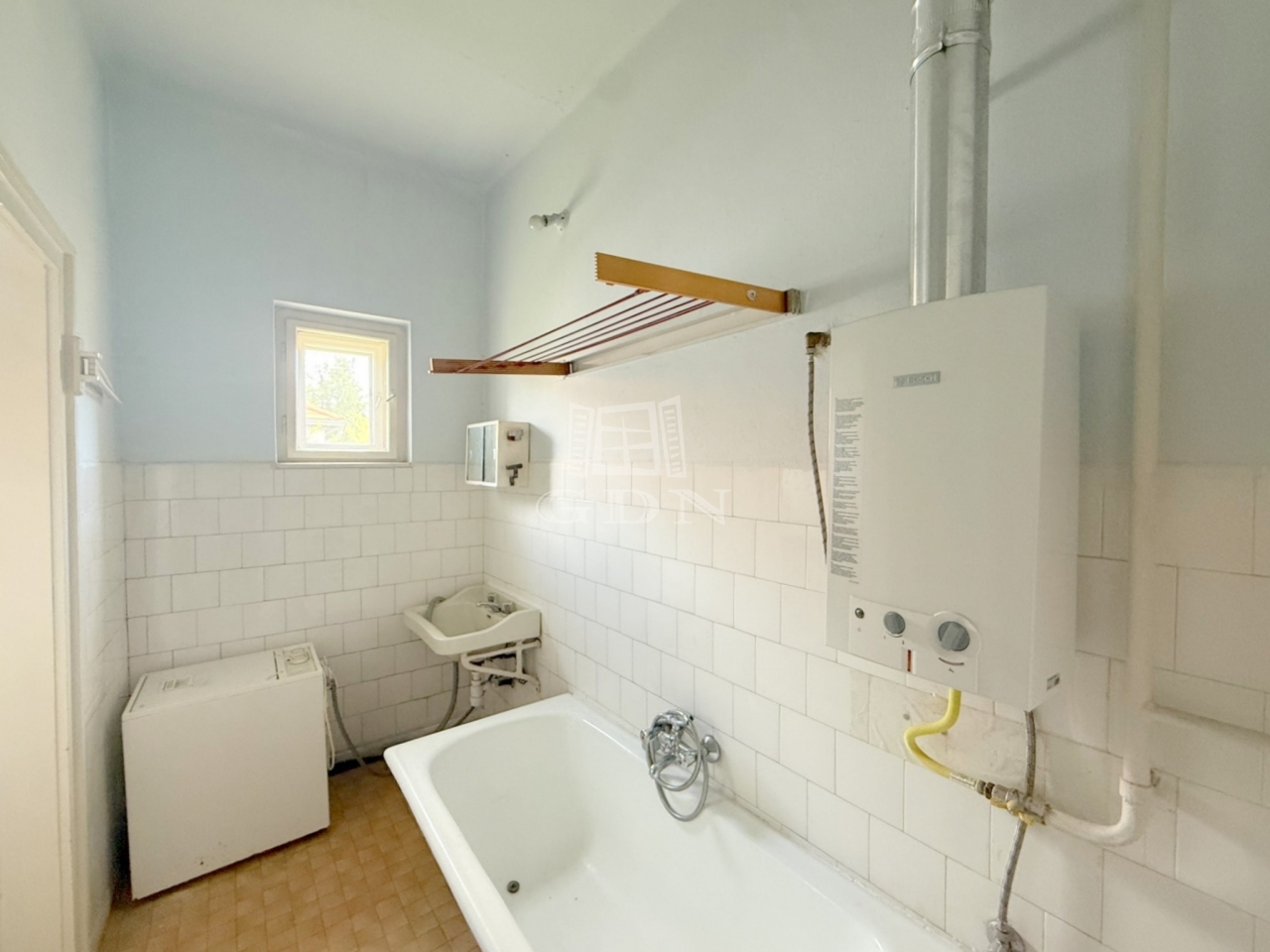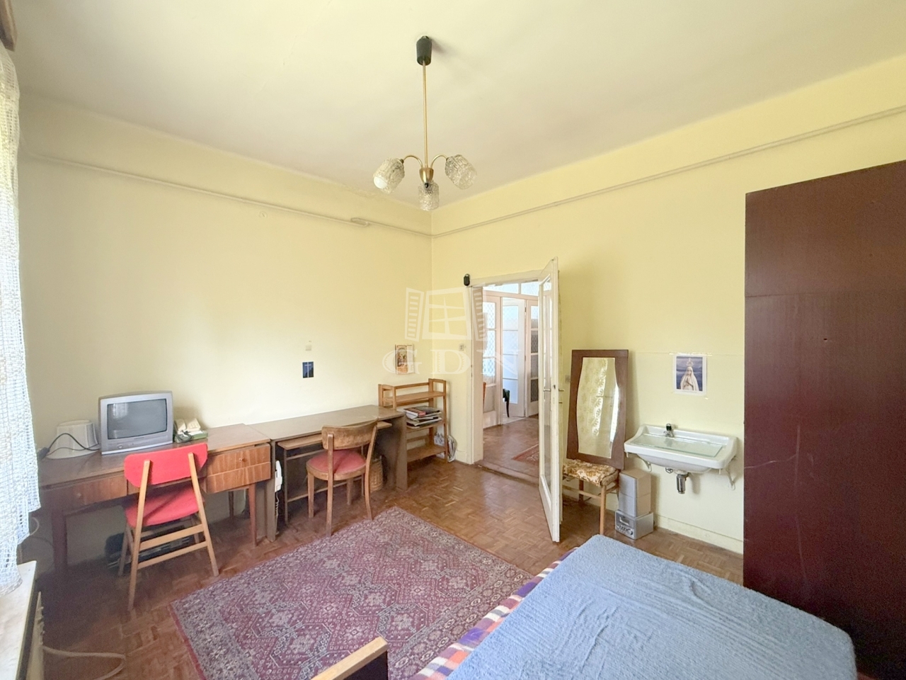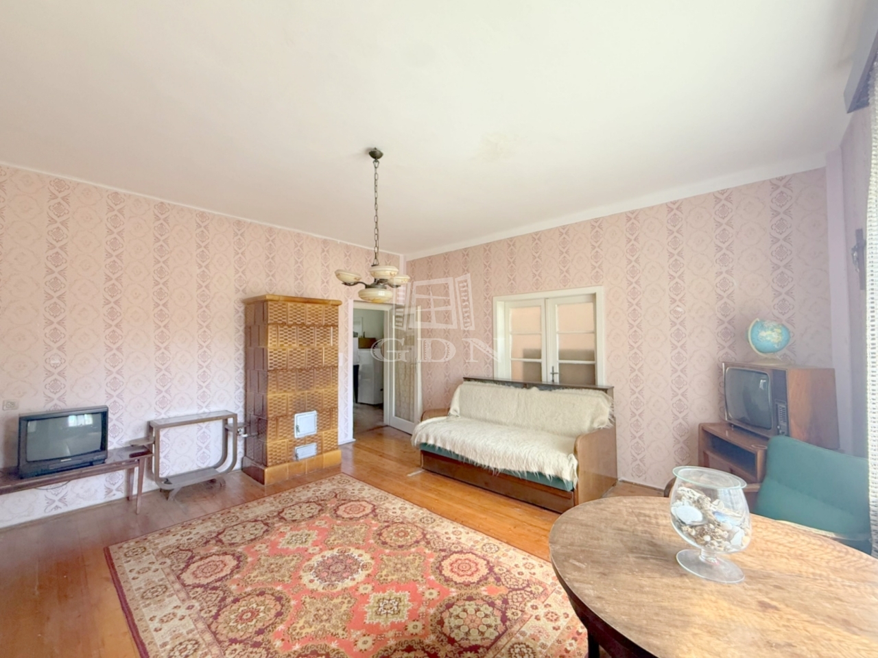 Az ingatlan 90 m2 - en tágas terek formájában ad otthont egy előtérnek, egy központi, ezidáig étkezőként használt helyiségnek, egy kettő ablakkal rendelkező konyhának, 3 különnyíló szobának, egy kamrának, egy fürdőkáddal felszerelt fürdőnek, valamint egy utóbbiból nyíló, ajtóval elszeparált toalettnek.