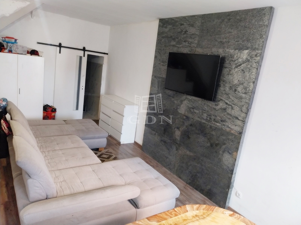 Alapterülete 44 nm, jelenleg 1 nagy szobás, amerikai konyhás elosztású, de könnyedén 1,5-2 szobássá alakítható több féle alaprajzi lehetőséggel.
