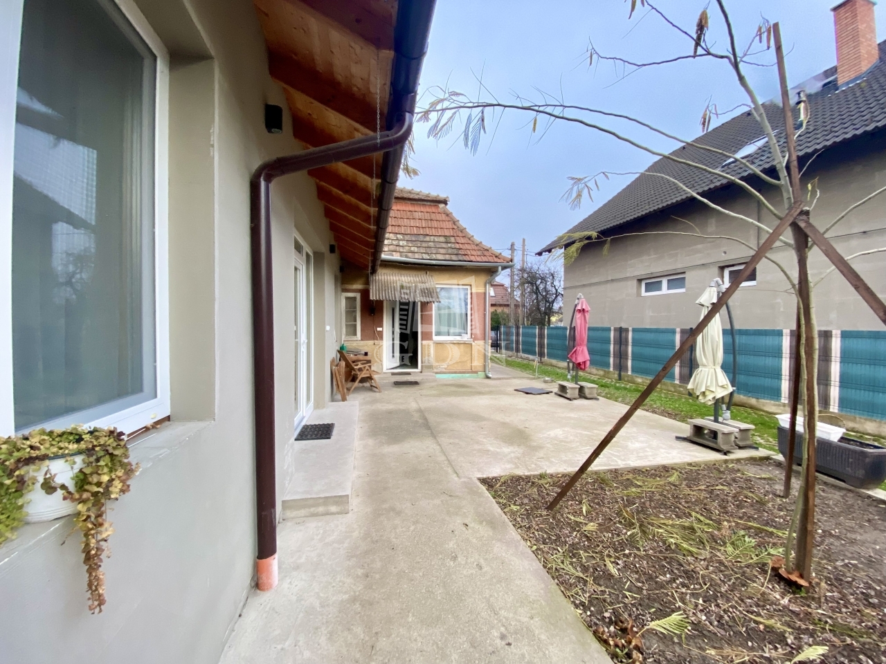A hátsó, 49,3 m²-es épület teljeskörűen felújított, modern kialakítású. Ytong falazata kívül 10 cm hőszigetelést kapott, a tetőn pedig 30 cm szigetelés gondoskodik a kiváló energiahatékonyságról. A kényelmet padlófűtés és klímával történő fűtési lehetőség biztosítja, így a rezsiköltségek rendkívül kedvezőek lehetnek.