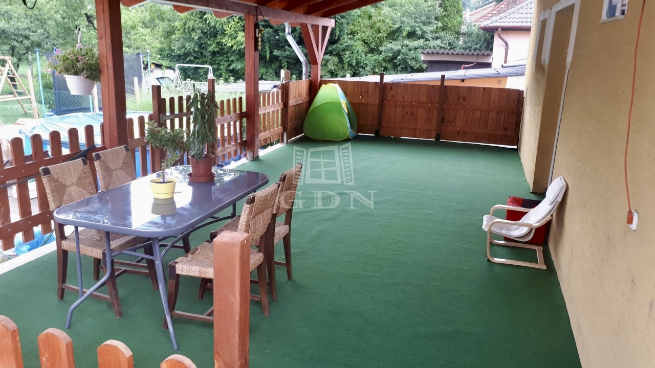 A fő élettérből kilépve a kényelmes teraszra jutunk, onnan a kertbe, amely elég nagy ahhoz, hogy a kerti partik méltó helyen legyen nagyobb társaságnak is.