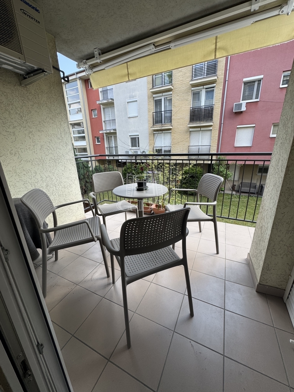 A lakás egyik nagy előnye a két terasz, melyek közül az egyik 7 m²-es, a másik 5 m²-es, így mindig találhatunk egy nyugodt sarkot pihenésre vagy akár reggeli kávézásra. A műanyag, hangszigetelt nyílászárók gondoskodnak a csendes, zavartalan lakókörnyezetről, míg a gázfűtés gazdaságos fenntartást tesz lehetővé.
