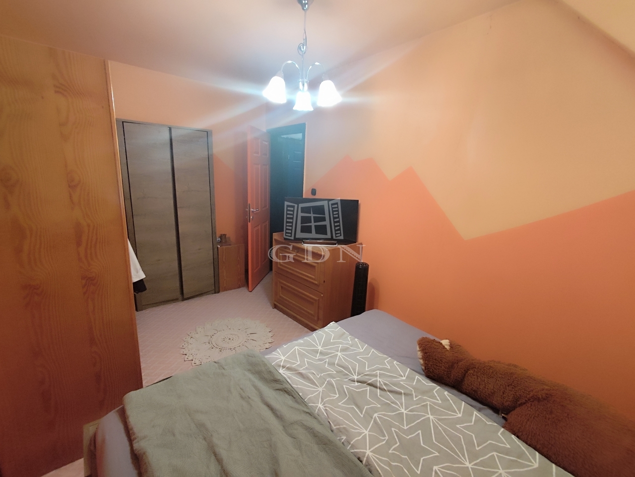 Emelet: két hálószoba, egy félszoba, valamint fürdőszoba WC-vel (egy helyiségben)