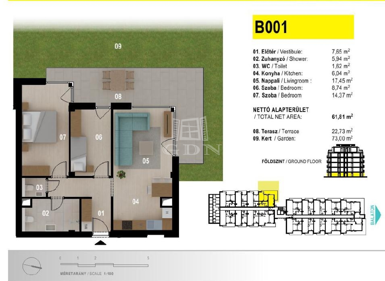 Az ötemeletes apartmanház a Balatonra merőlegesen helyezkedik el, így biztosítva a lakásokból az örök balatoni panorámát tulajdonosainak. Modern, új építésű, prémium minőségű apartmanok várják Önt, közvetlenül a vízparton. Az ingatlan előtt húzódó több mint 3 km hosszú szabad strand gondozott zöldterületekkel, parti sétányokkal és sportolási lehetőségeket kínáló kölcsönzőhelyekkel szolgálja ki az itt nyaralók igényeit.