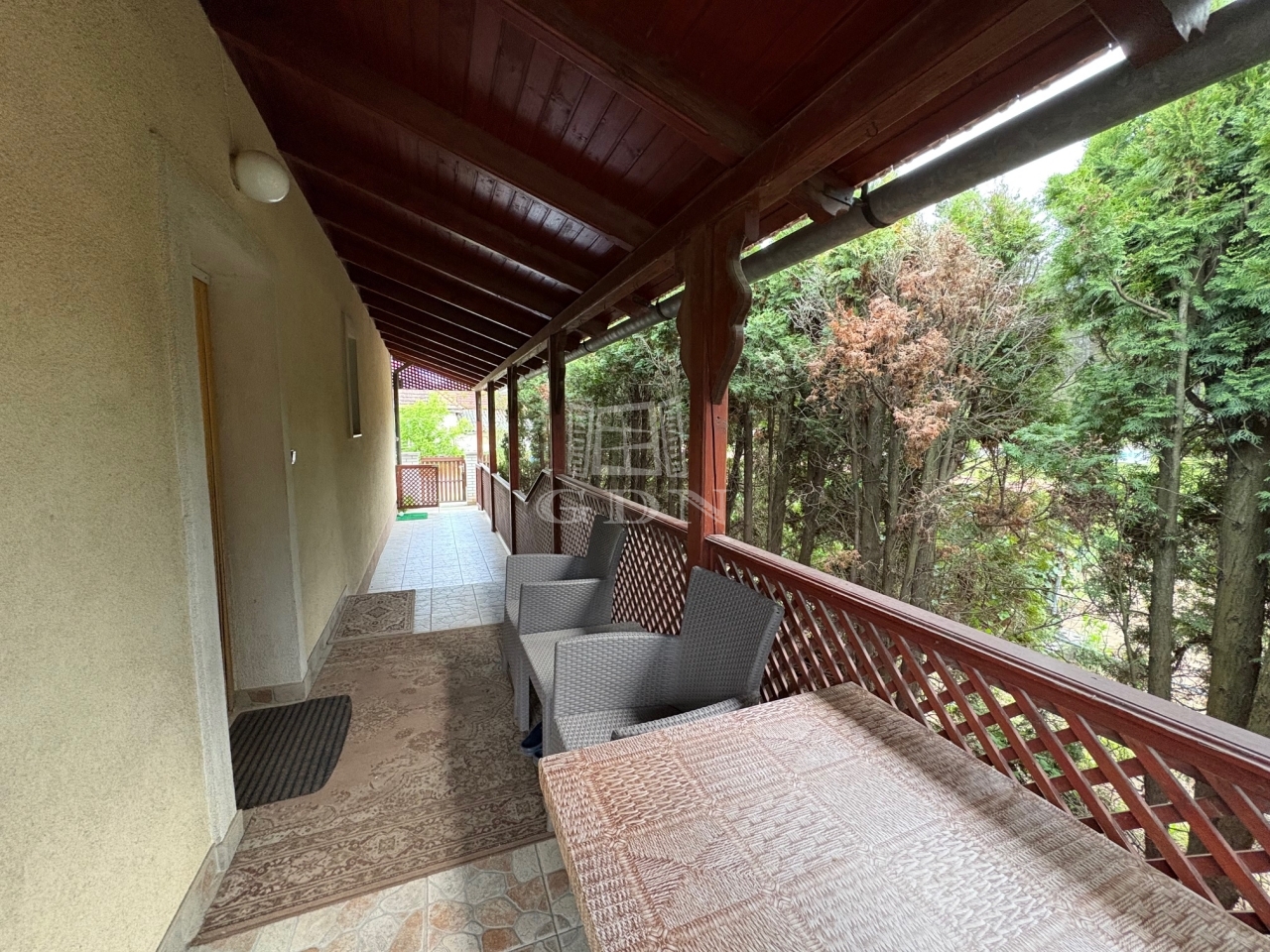 Veresegyházon Tó-part közelében kínálunk eladásra egy nappali + 4 szobás, duplakomfortos, fedett teraszos, önálló, tégla építésű családi házat, 646nm-es telekkel. Kiváló elrendezésének köszönhetően, két generáció kényelmes együttélését is biztosítani tudja, illetve igény szerint további hálószobák is kialakíthatók. A ház 2003-ban felújításon esett át, szigetelést is kapott. A tető szintén felújított, a fakeretes thermo nyílászárók redőnnyel felszereltek. A ház alatt száraz pince található. A parkosított kertben fúrt kút könnyíti a locsolást, illetve egy garázs és tároló is található. Rezsi költség rendkívül kedvező. Ideális választás lehet ha vágyik egy hangulatos, nyugodt otthonra, de fontos a jó infrastruktúra.