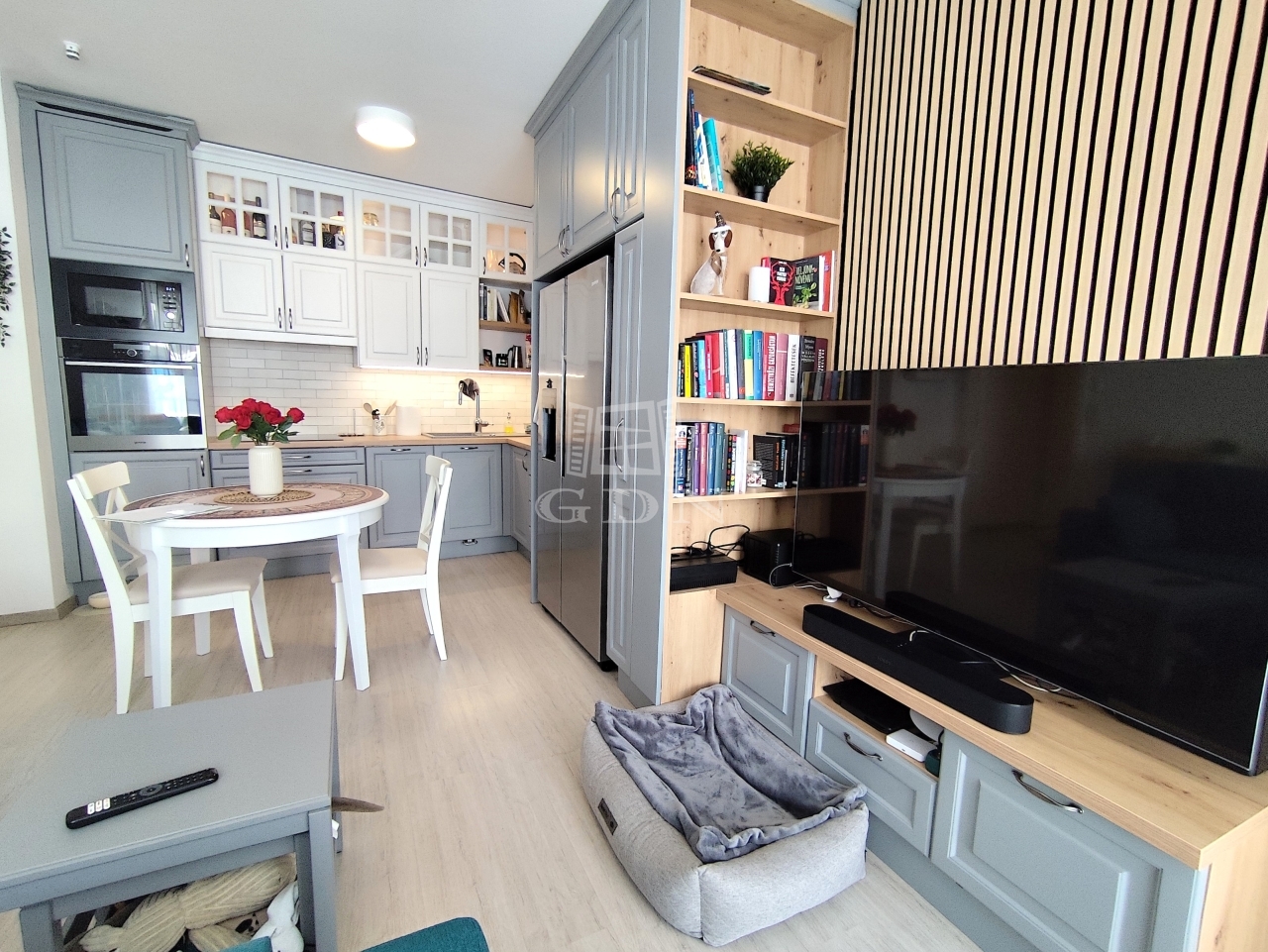Egyedi gyártású konyhabútor, beépített gépek, letisztult, egységes enteriőr – tehát minden adott.