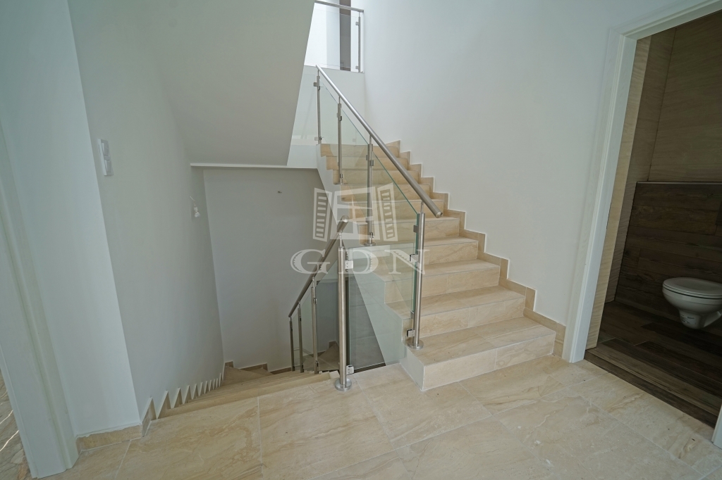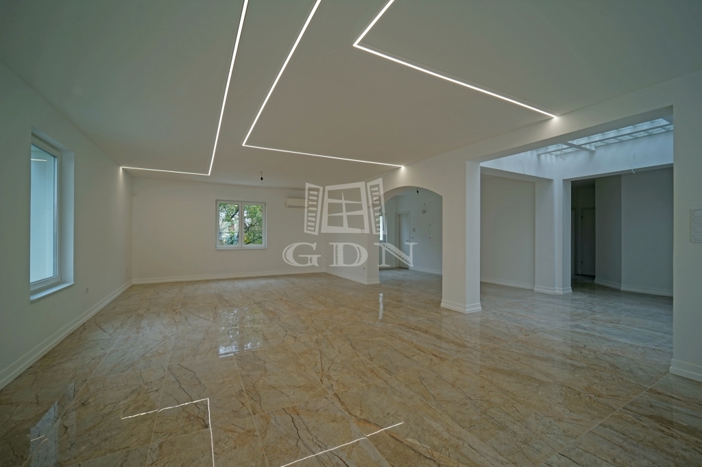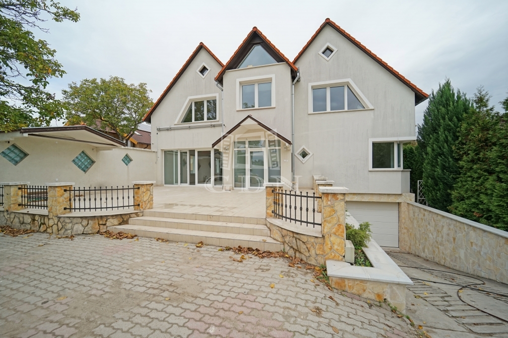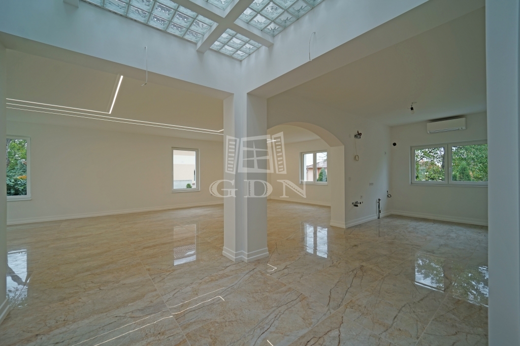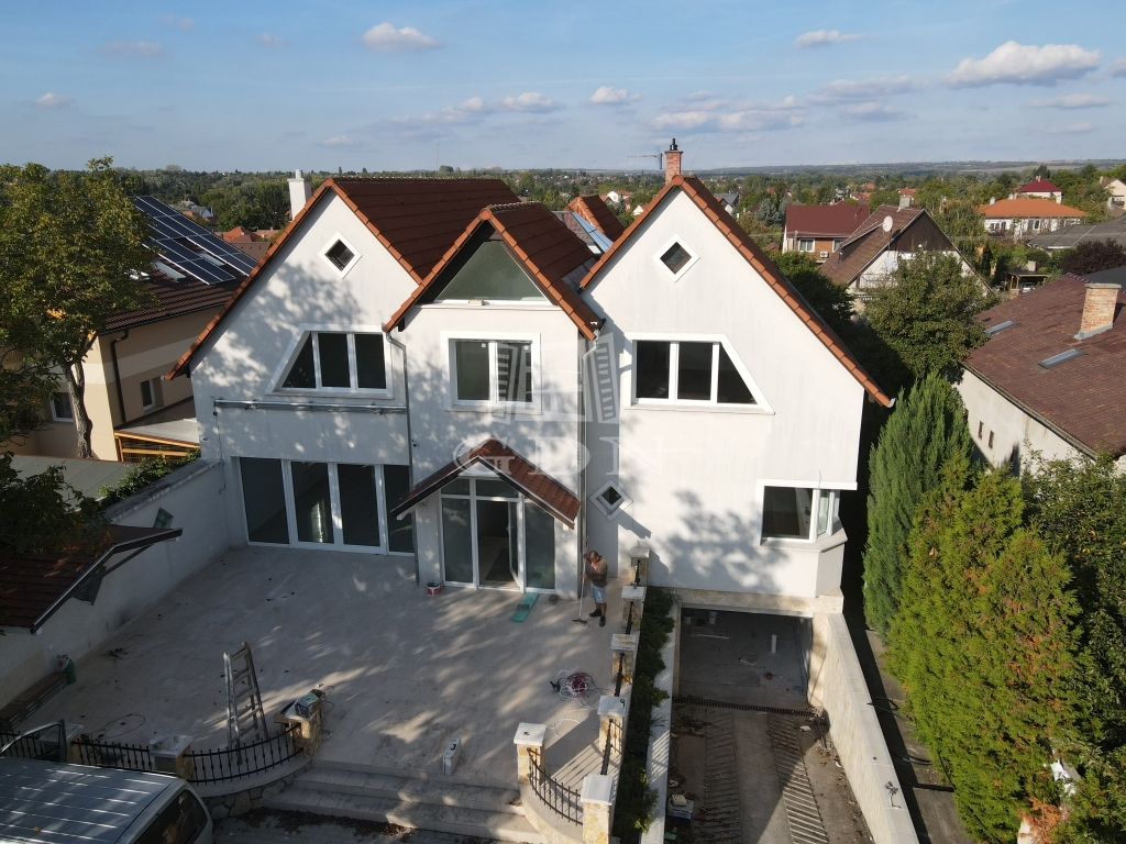 Budapesten a XVII. Kerületben a Pesti útról nyíló 848m2-es telken, eladó egy nettó 523m2-es 7 szoba + 2 nappalis, fűthető belső medencés, háromszintes luxus családi ház.