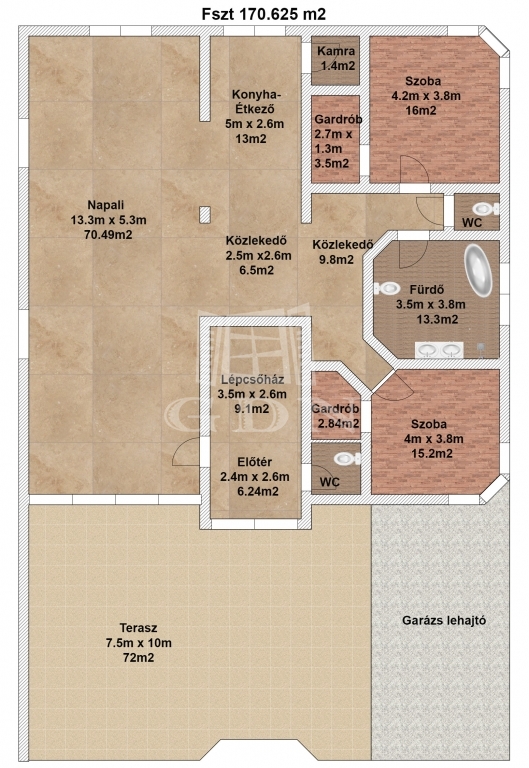 72 m2 Erkély/terasz