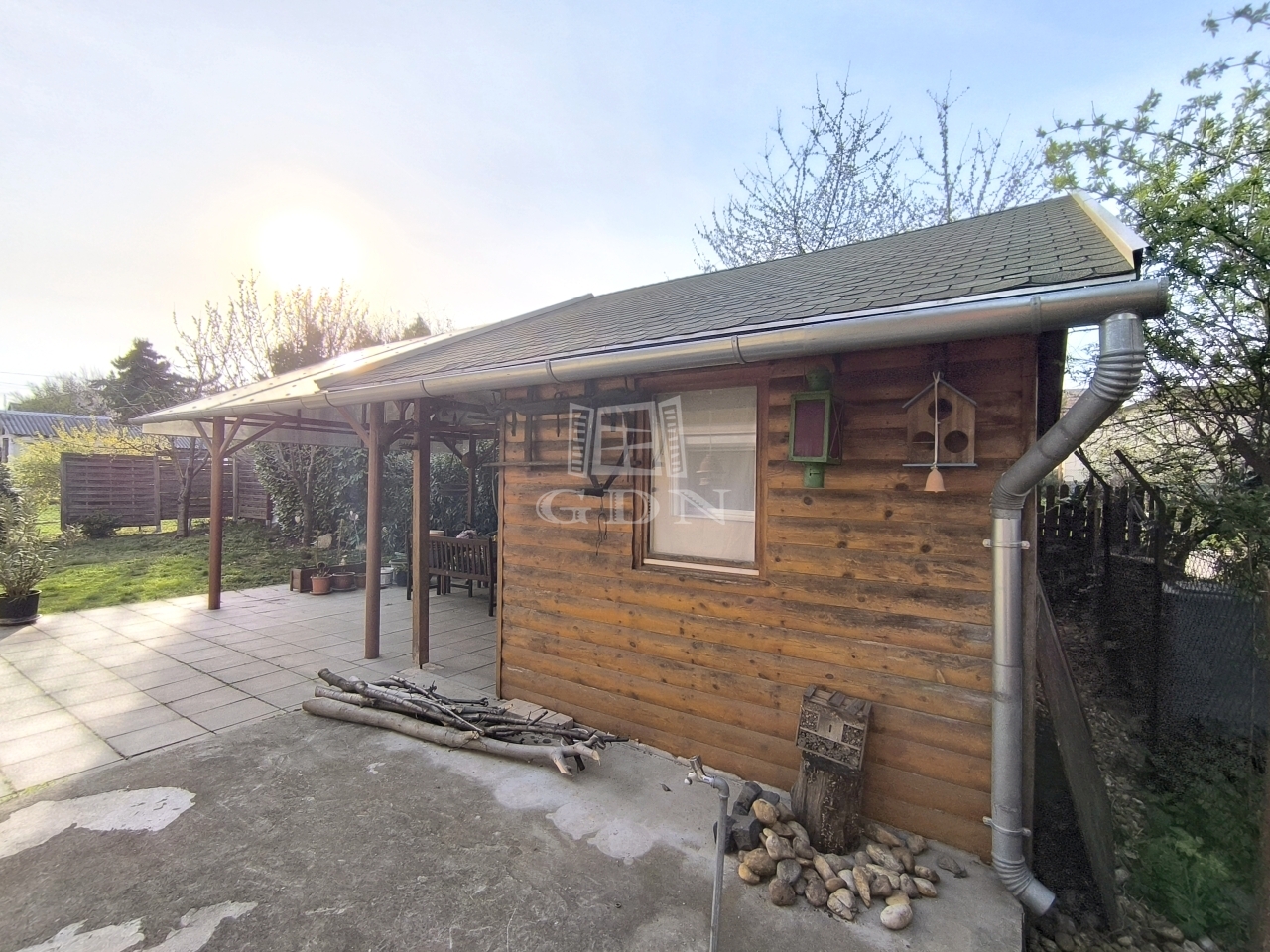A telken található még, egy 15 nm-es téliesített faház / víz, villany bevezetve /, 30 nm-es fedett terasszal és egy 10 nm-es kerti tároló