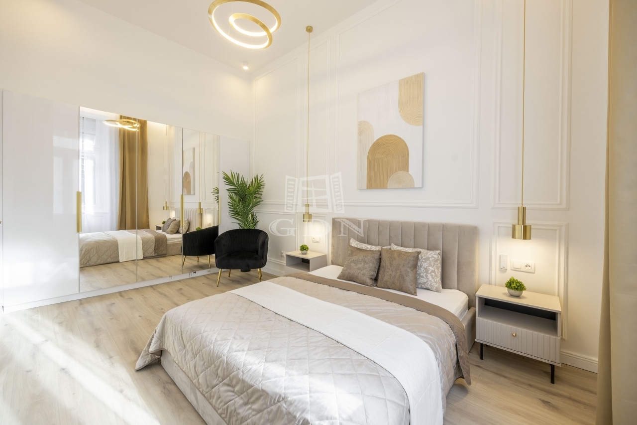 Lépj be Budapest szívébe! Ez a 88 m²-es, teljesen felújított, prémium lakás a VI. kerületben vár rád, az Oktogon és a Nyugati tér közelében. Az első emeleti ingatlan egy 1880-as években épült történelmi házban helyezkedik el – a lakás modern, stílusos és azonnal költözhető vagy kiadható. ️