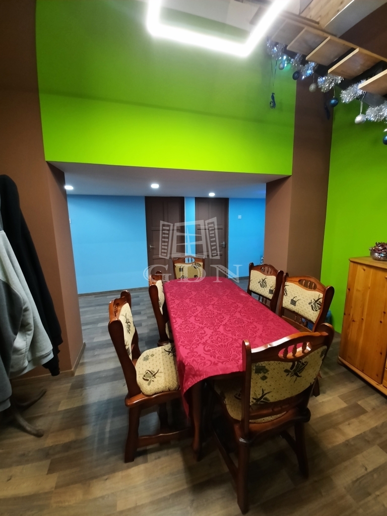 A ház alapterülete 86 m2, azonban a konyha hozzáépítéssel és a tetőtér beépítésével a valós hasznos alapterület 165 m2-re nőtt.