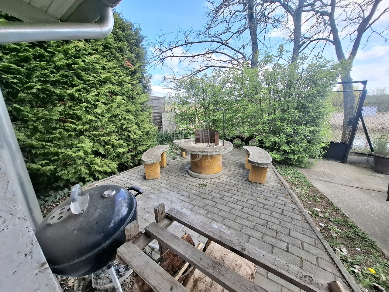 A kertben 20 m2 fedett kerti tároló került kialakításra melybe bevezetére került víz, villany, csatorna egy nyári konyha kialakítását lehetővé téve, valamint rendelkezésre áll egy tűzrakó is itt elkészülhet a kifogott halakból a halászlé!